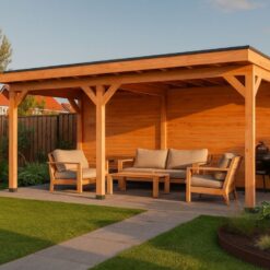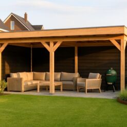 Wil je het hele jaar door genieten van het buitenleven? Dan is deze douglas overkapping van 500×300 cm een uitstekende keuze. Dankzij de extra dikke 15×15 cm staanders krijgt dit model een nog robuustere uitstraling en voelt de constructie bijzonder stabiel aan. Dit maakt de overkapping niet alleen praktisch, maar ook een luxe blikvanger in de tuin.